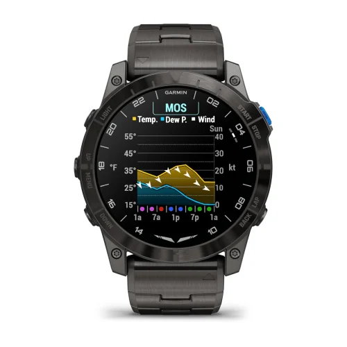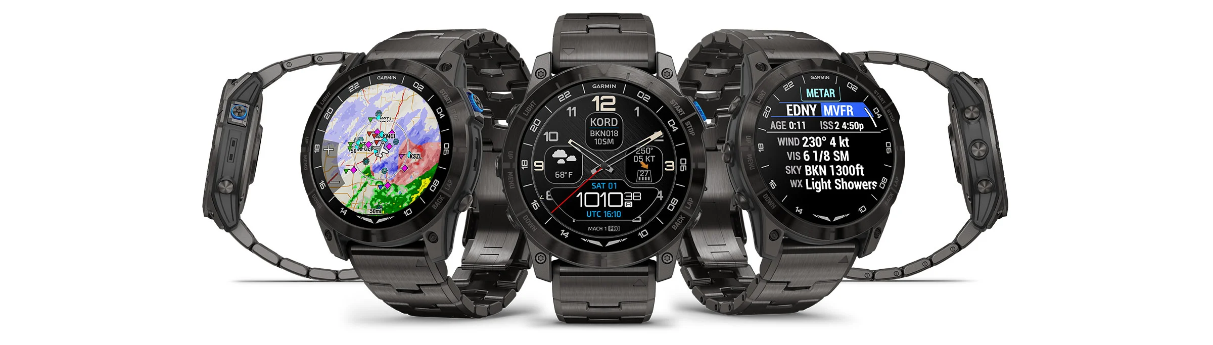 The stunning 1.4” AMOLED display is our highest-resolution aviator watch yet. The watch face comes standard with a UTC readout and airport weather.