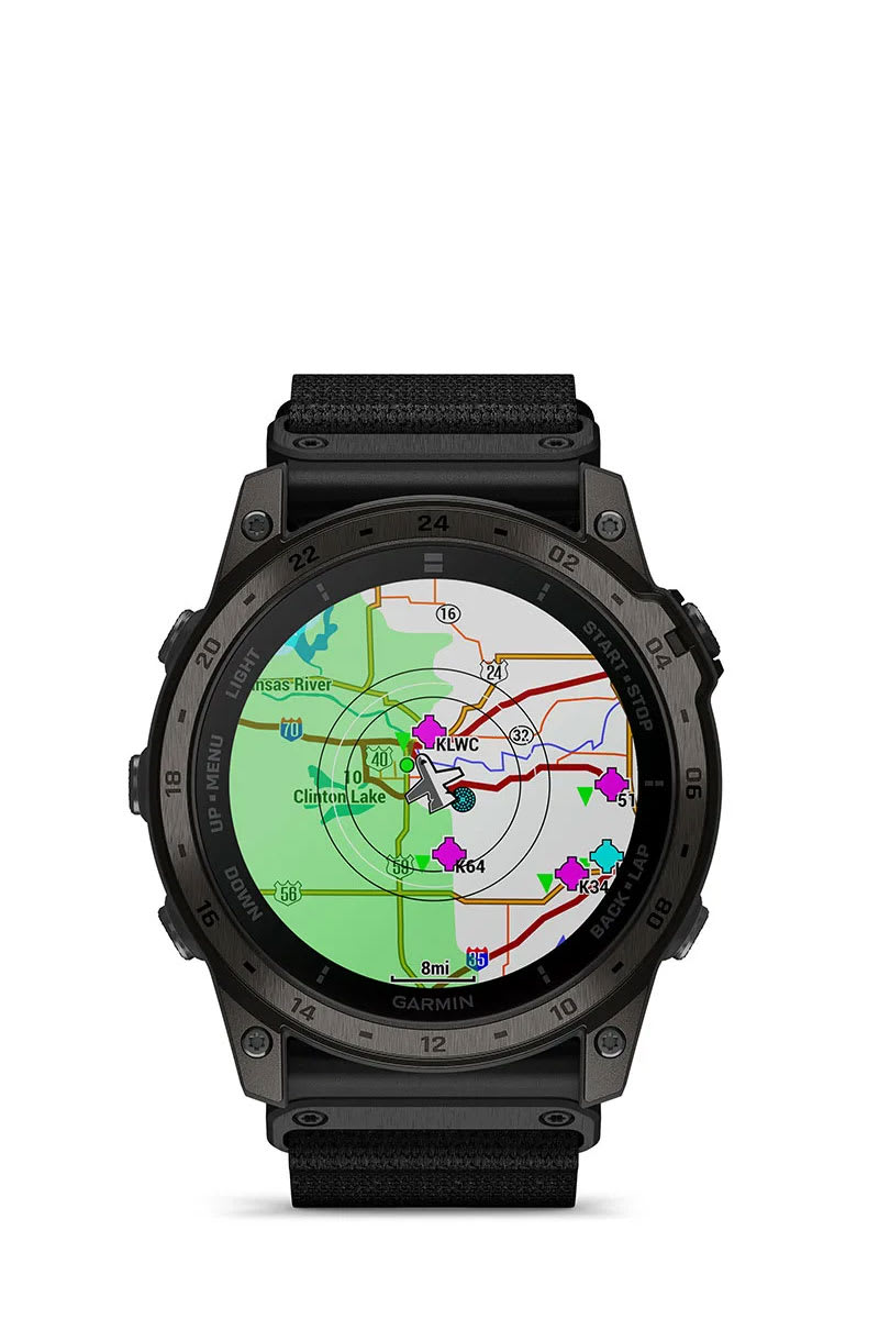Rise above with tactix 8. It’s the ultimate tactical smartwatch, featuring a stunning AMOLED display, titanium bezel, sapphire lens, an internal speaker and mic for voice features and a 40-meter dive rating.